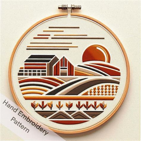 Landscape Embroidery Pattern, Abstract Fields And Flowers Hand Embroidery PDF Download, DIY Embroidery Craft. Instant Download, Stitchers