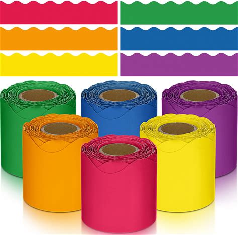 Taobary 6 Rolls 196.8 ft Spring Classroom Bulletin Board Borders 2.25 Inches Scalloped Trim Bulletin Board Decorations For School Whiteboard