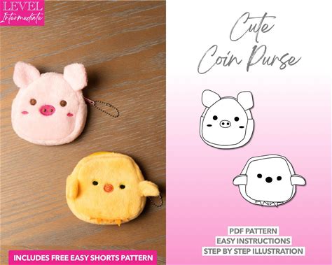Coin Purse Sewing Pattern, Easy Sewing Project, Mouse Wallet Pattern, A4, Pdf Sewung Tutorial