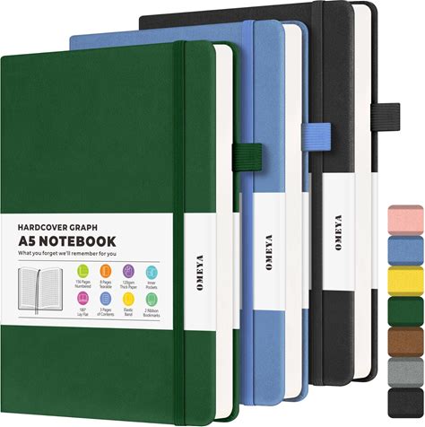 Graph Paper Notebook 3 Pack, A5 Grid Notebook Journal, Graph Notebook With 120Gsm Paper, Hardcover Leather Journal For Writing, Grid Paper Notebook