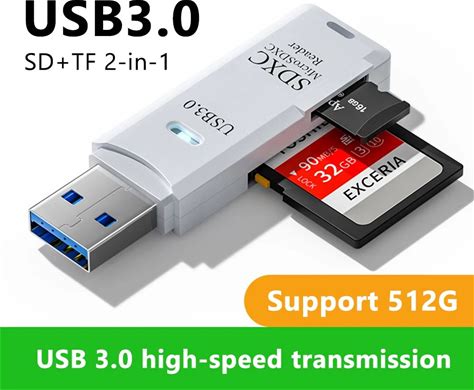 2 in 1 USB 3.0 Card Reader High Speed Micro SD TF Memory Card Adapter For PC And Laptop Use White Usb3.0