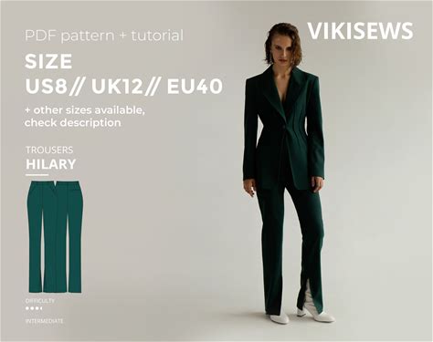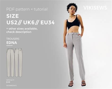 Edna Trousers Digital Pattern Pdf Sewing Pattern With Tutorial Size US 2 UK 6 EU 34